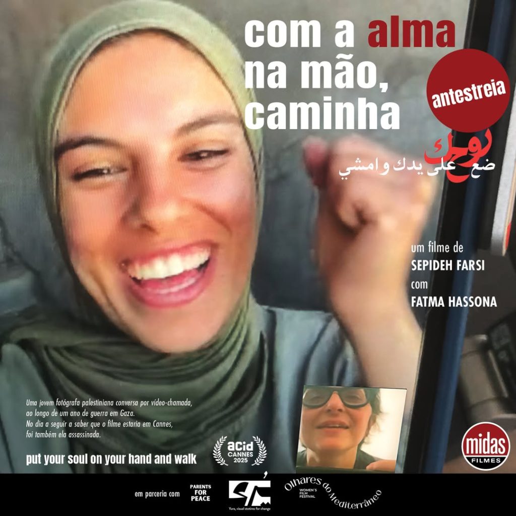 COM A ALMA NA MÃO, CAMINHA (Put Your Soul on your Hand and Walk) um filme de Sepideh Farsi com a fotógrafa palestiniana Fatma Hassona antestreia no dia 3 de Setembro, às 21:30 no cinema Ideal, e estreia em todo o país a 18 de Setembro. A sessão será seguida de uma conversa com a realizadora Cláudia Varejão.