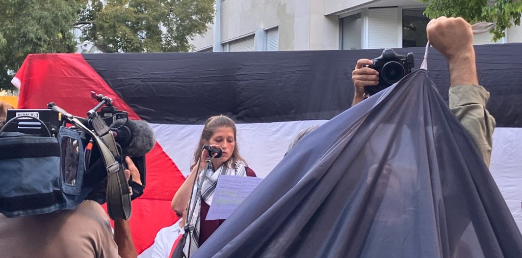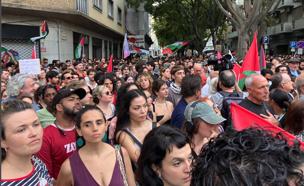 Várias intervenções das organizações que convocaram e dinamizaram esta iniciativa de fim-de-tarde provocaram apelos à libertação imediata dos ativistas da flotilha internacional e condenaram a forma como o governo português está a agir neste conflito que tem por base uma ação de carácter humanitário.