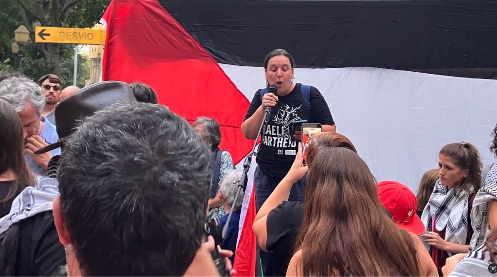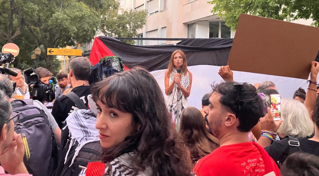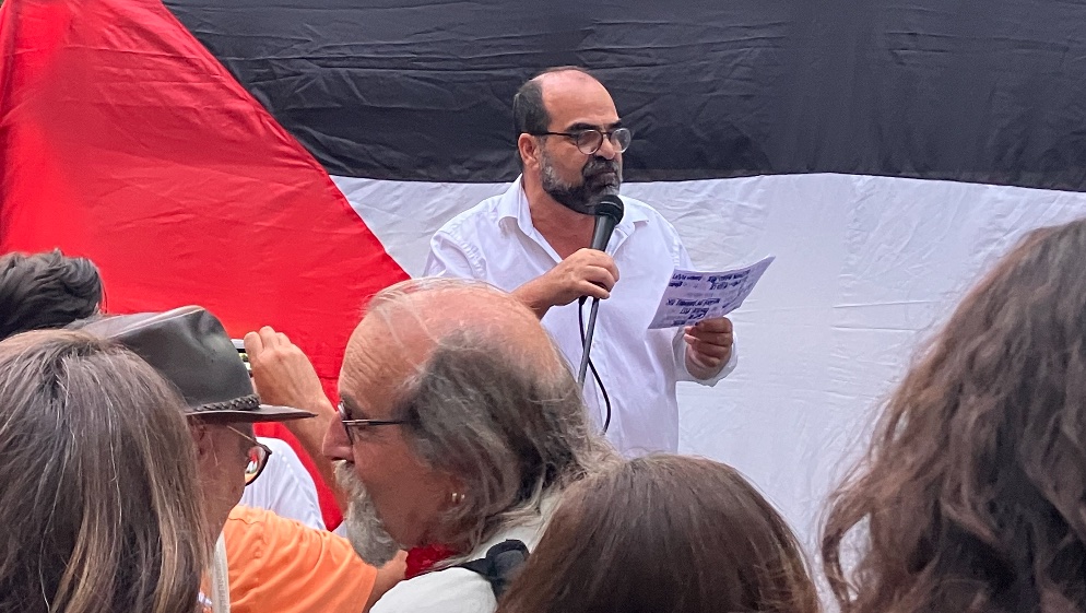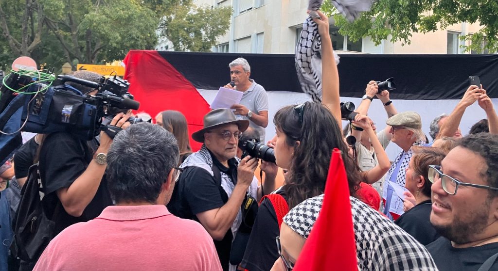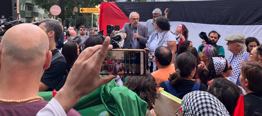 Daniel Oliveira do Fórum Manifesto, a representante da Amnistia Internacional e outros intervenientes exigiram a libertação imediata dos ativistas da Flotilha e valorizaram a sua coragem e espírito combativo em favor do povo palestiniano.
