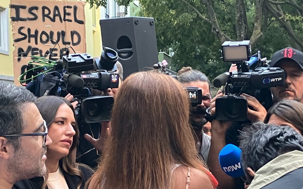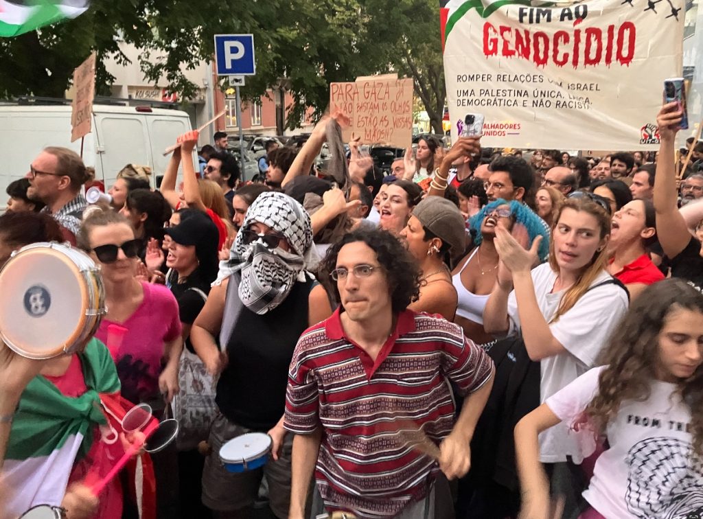 A palavras de ordem traduziam um estado emocional intenso da parte de todos aqueles que vieram até à zona do Saldanha, em Lisboa, onde está situada a Embaixada de Israel.