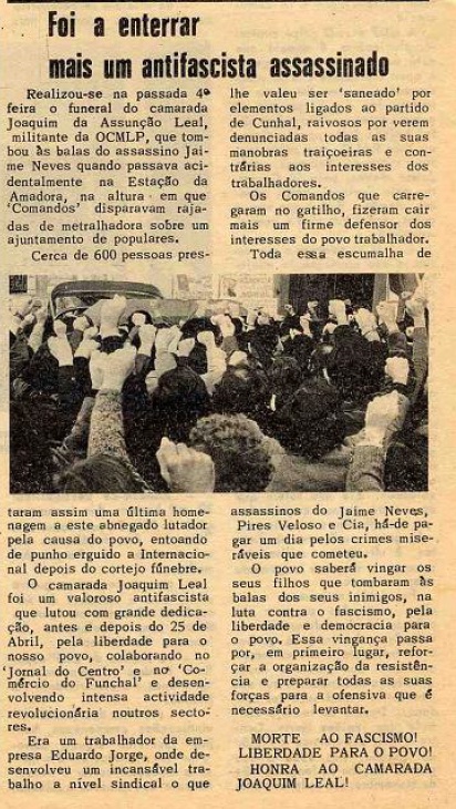 Joaquim Leal um militante antifascista vítima do 25 de Novembro