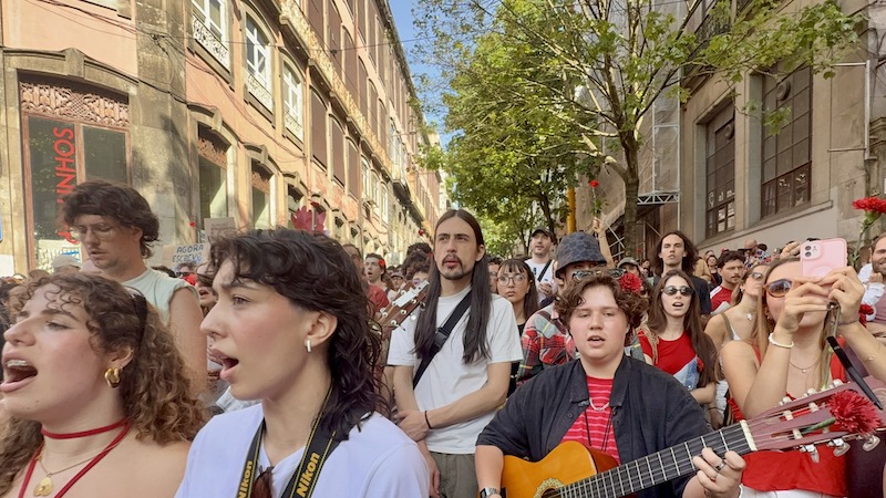 52 anos depois, a cidade voltou a abrir-se e a gritar em plenos pulmões pela Liberdade e direitos! Um mar de gente – vivo, pulsante, cheio de energia e alegria – inundou as ruas desde a ex-PIDE até aos Aliados onde desaguou. Há dois anos emocionei-me ao ver tantos jovens a gritar pelo direito à Liberdade. Pensei que tinha atingido um pico de espantação mas hoje, aconteceu um transbordar de gente, de emoção, de alegria incontida. E esta chuva de sentimentos foi partilhada por tanta gente cúmplice como se soubéssemos que estávamos a viver um tempo único!